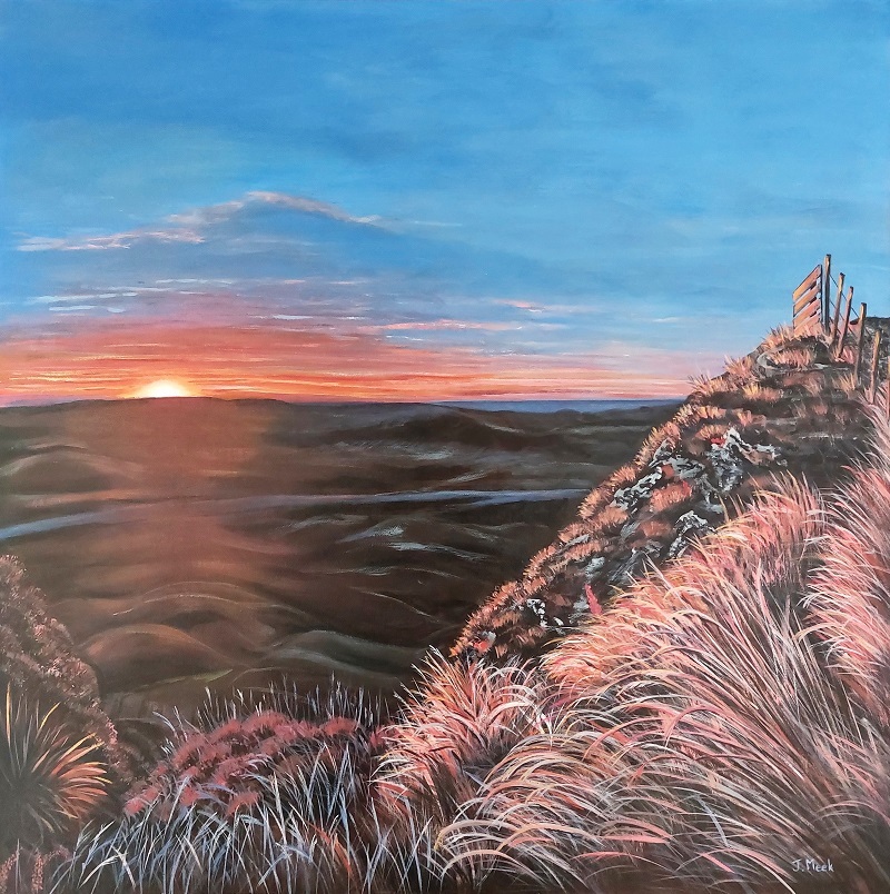 Where-Te Mata Peak, Approx sizes W-76cm, H-76cm, D3.8cm. Large signed acrylic painting on boxed canvas, with painted edges, sealed and ready to hang.
